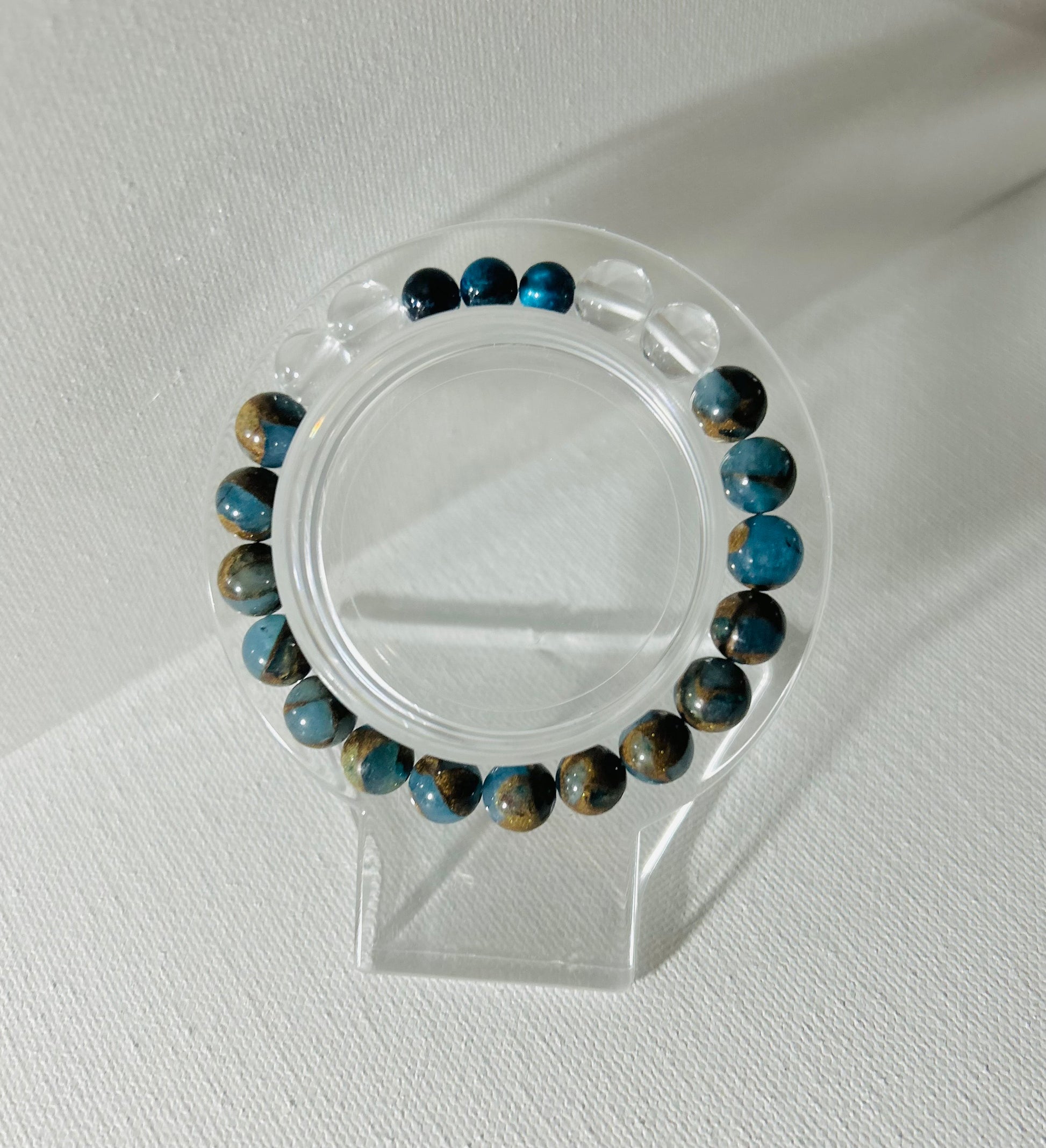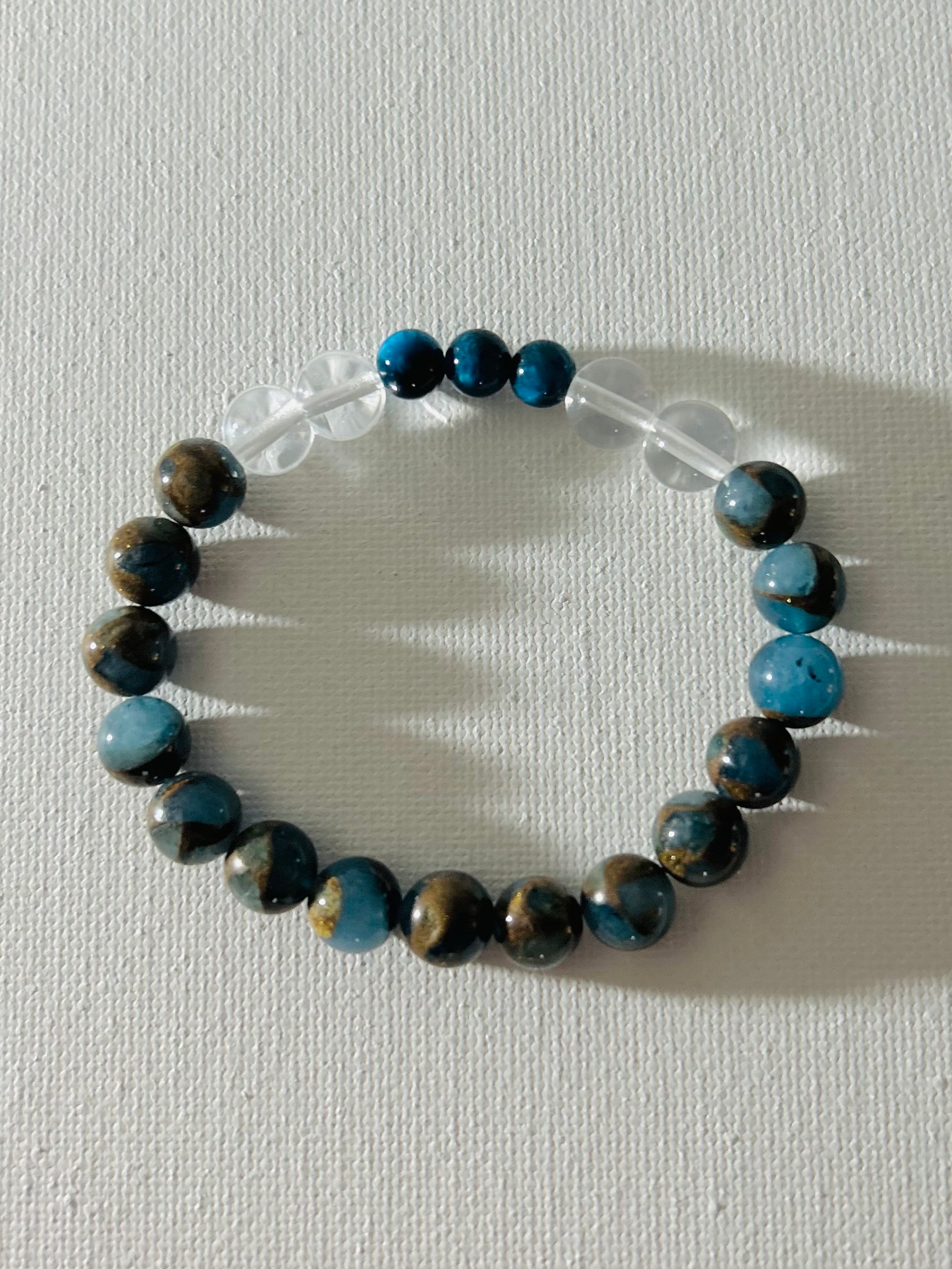The Aquatic Jungle bracelet blends the wild spirit of the jungle with subtle oceanic hints, crafted from shimmering crystal-like glass beads. This playful accessory adds an adventurous splash to your look, perfect for those who love to mix nature’s wonders with a touch of the ocean!