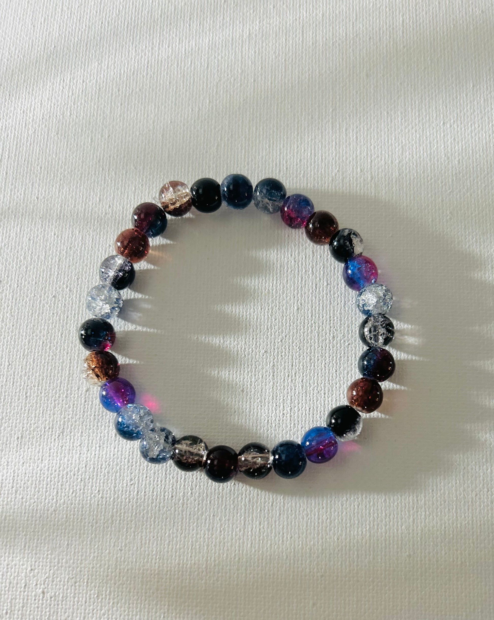 This bracelet captures the enchanting vibe of a crystal cave, sparkling with dark blue, red, and black glass beads that mimic glowing crystals. Wearing it feels like stepping into a magical world, adding a magical touch of wonder to any outfit. Let this 9" dazzling piece bring a little sparkle and whimsy to your day!